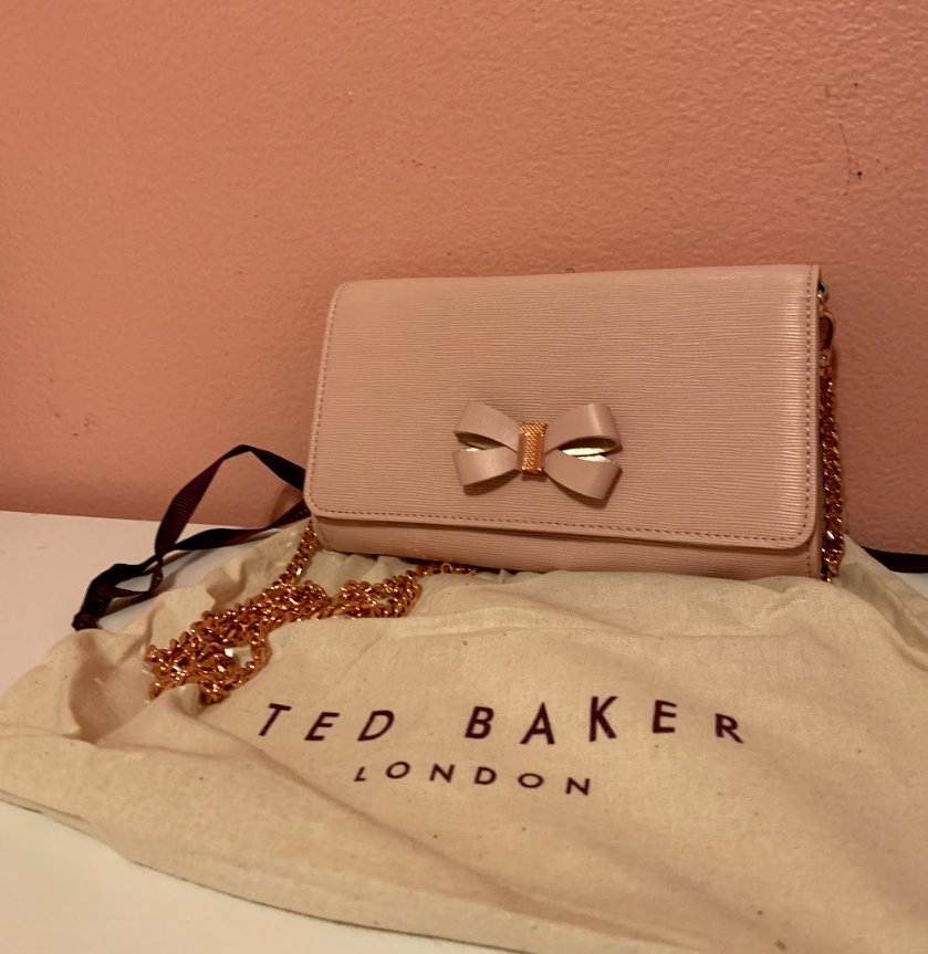 This Ted Baker, London, bee charm, metallic bag is so gorgueos. Found this beauty on sale for 50% off at Nordstroms rack, the original price was around $220. I couldn’t pass this opportunity. This was my late Christmas gift for myself… Well, my second late Christmas gift to myself. , I love the pink bow print on the inside of the bag. The rose gold lining the inside of the bag is great. Sadly, I won’t have to many occasions to carry around such a fancy bag. Though, I definitely suggest this bag.Another Ted baker bag, I can’t get enough of these beautiful bags! It’s quite small but I love the pink. I can definitely wear this out more. I was able to get this bag unopened, untouched, completely new for $60. The original price was $160. The bag comes in this nice babyish pink with a matching bow and rose gold chain. The inside has the same bow print as my previous bee charm bag. It has many thin pockets in the inside, about the size to carry a credit card in each pocket. I could probably fit my phones, a small wallet, ear buds, and a lip gloss. Love these bags! If you’re wondering where I got the great deal, I found it on Poshmark, a app to buy and sell items. Normally they’re not new though.